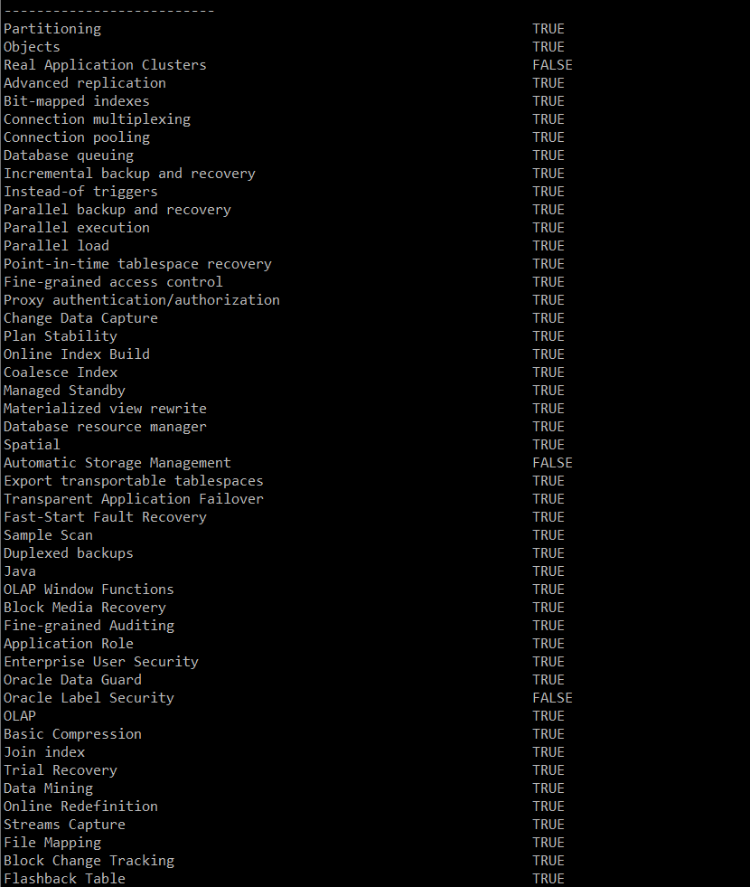 #) 데이터베이스 인스턴스에 설치되어 활성화된 옵션 및 기능의 정보 확인