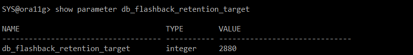 alter system set db_flashback_retention_target = 2880 scope=both;